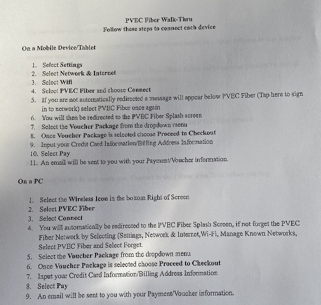 River Forge has internet services through PVEC Fiber. They offer different plans at different prices and it is available once you arrive on property.